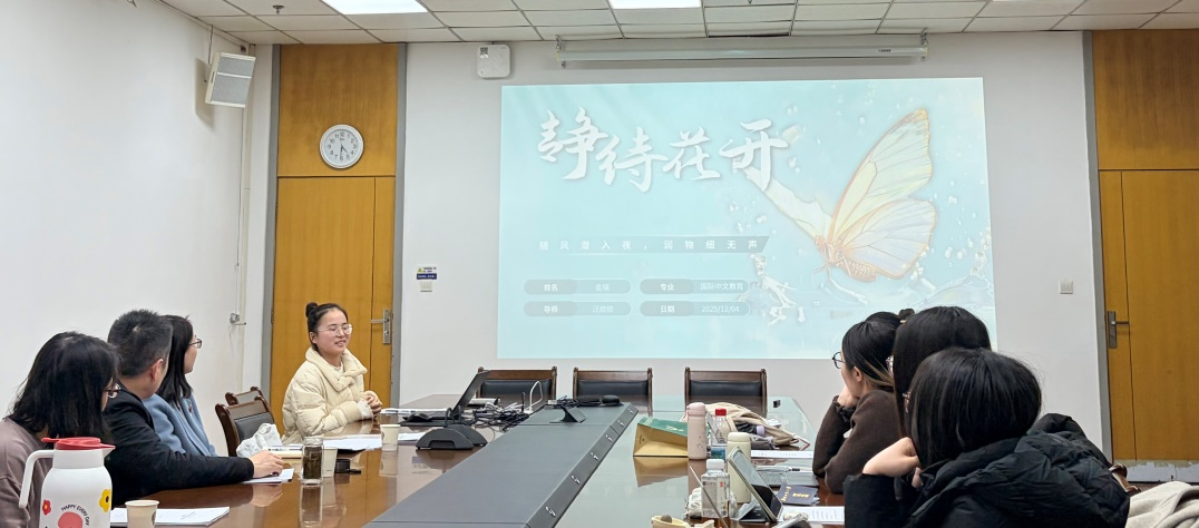 12月4日下午,外国语言文学学院在进学楼707室举行2023级国际中文教育专业硕士实践考核会。南京师范大学国际文化教育学院院长孙道功教授,我院汉语国际教育系教师汪欣欣、周静担任评委。