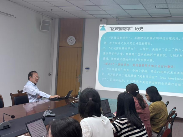 2025年10月17日下午,“外国文学与比较文学”研究中心举行2025-2026年度第二次学术交流会。中心主任陈世华教授做了题为《区域国别学与国家社科申报》的指导讲座,研究中心团队成员、学院其他研究中心部分教师及研究生参加了本次活动。