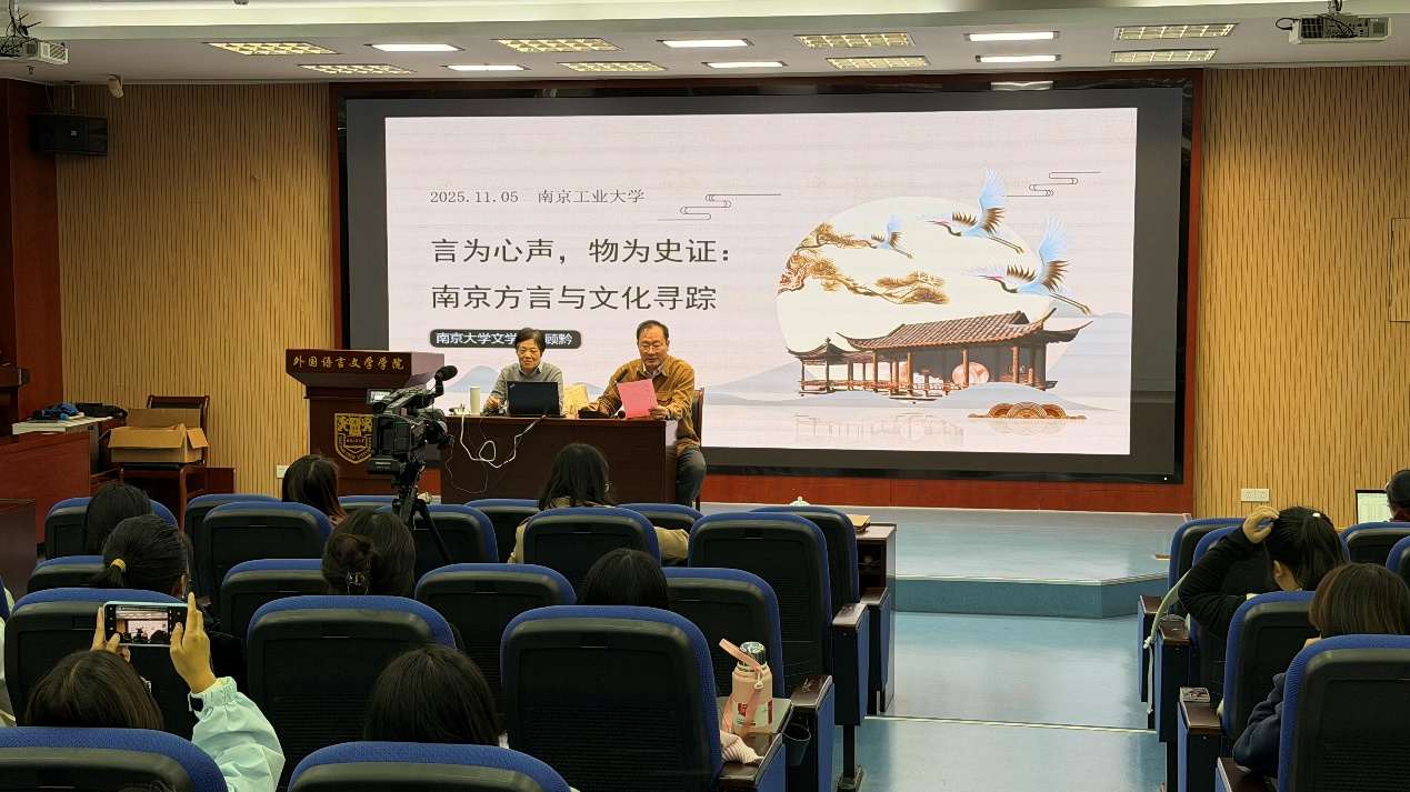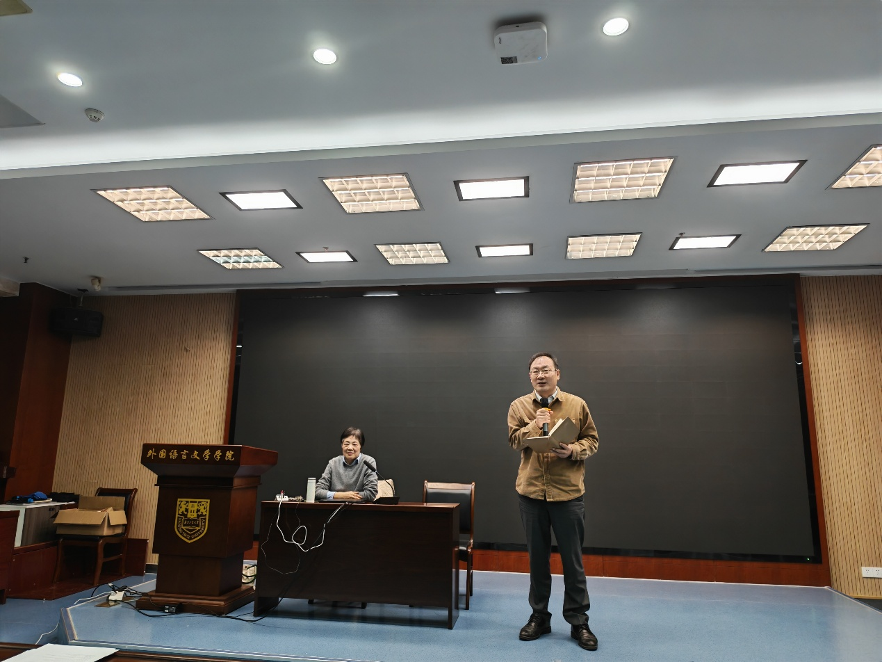 2025年11月5日下午16:00,南京大学文学院顾黔教授应邀莅临我校,在进学楼501报告厅为外国语言文学学院师生带来了一场题为“言为心声,物为史证:南京方言与文化寻踪”的精彩讲座。本次讲座由外国语言文学学院院长陈世华教授主持,汉语国际教育系全体师生参加了此次讲座,现场座无虚席,气氛热烈。