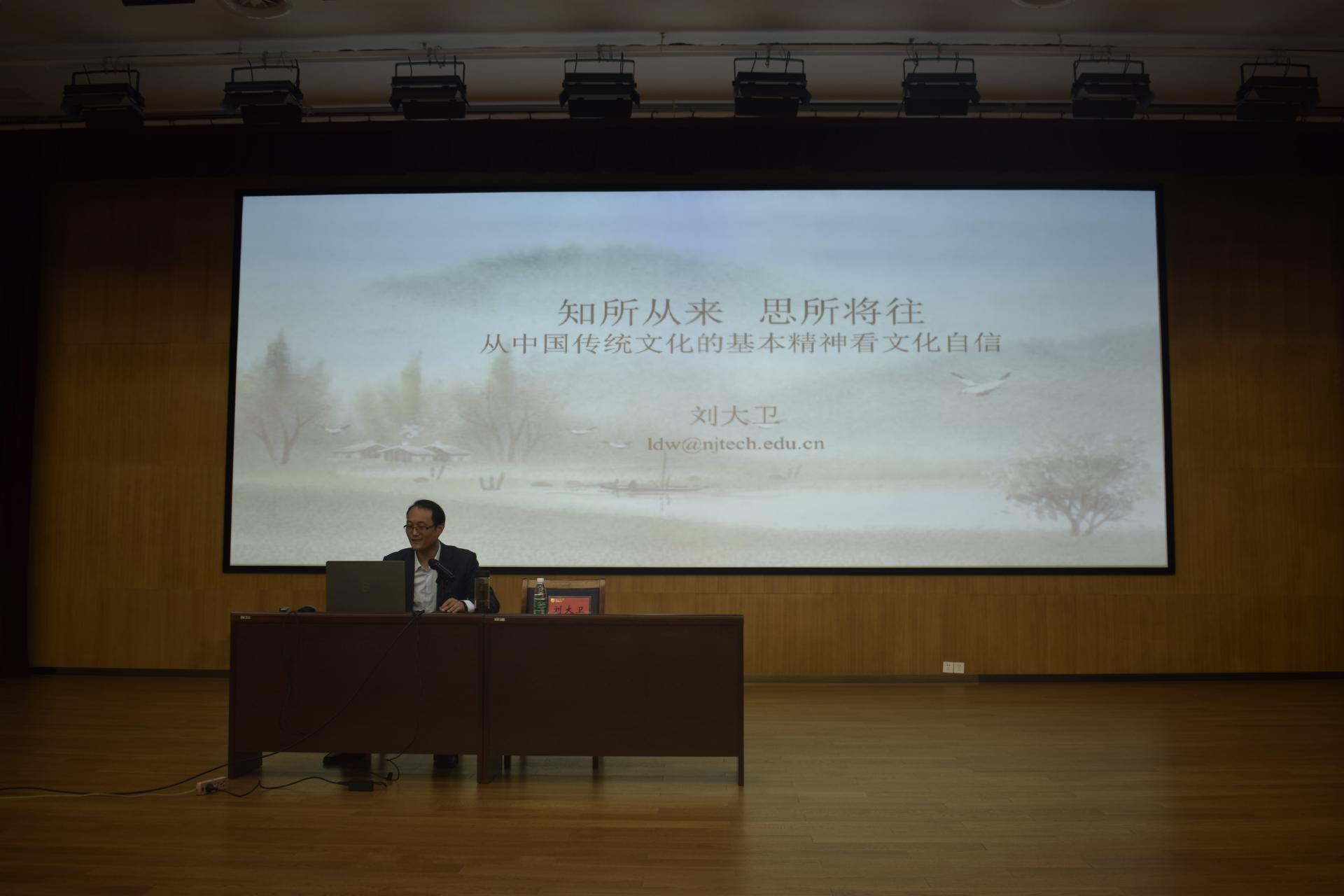 本次讲座的主题为《知所从来,思所将往——从中国传统文化的基本精神看文化自信》。首先,刘大卫老师向同学们介绍了中国传统文化中人文精神、自然精神、会通精神等三种基本精神,这些精神为世界上所有华人提供了“精神家园”;其次,刘老师阐述了中国传统文化的重要成就,他鼓励同学们要在中国传统文化中得到思想的启迪和心灵的陶冶;最后,刘老师指出,中华优秀传统文化是“民族文化血脉”,身为“外语人”更需要坚定文化自信,他希望同学们要在强大文化自信中滋养心灵、涵育德行。