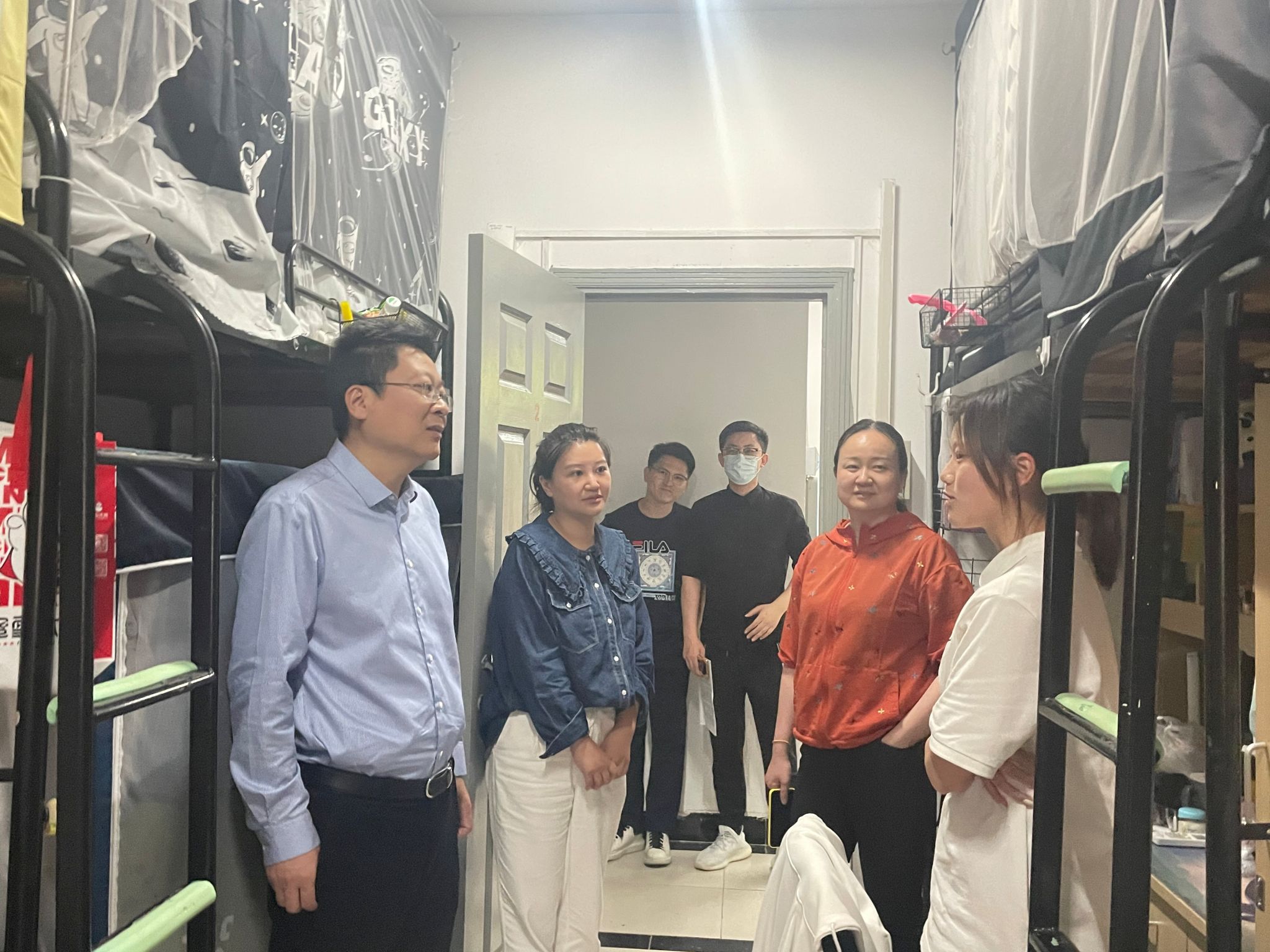 为深入推进学习贯彻习近平新时代中国特色社会主义思想主题教育,扎实做好调查研究工作,5月22-26日,外国语言文学学院党委书记张翔、院长陈世华、副书记高洁、副院长胡元江、副院长刘玲玉、副院长丁瑞媛、各年级辅导员等深入学生宿舍走访调研。