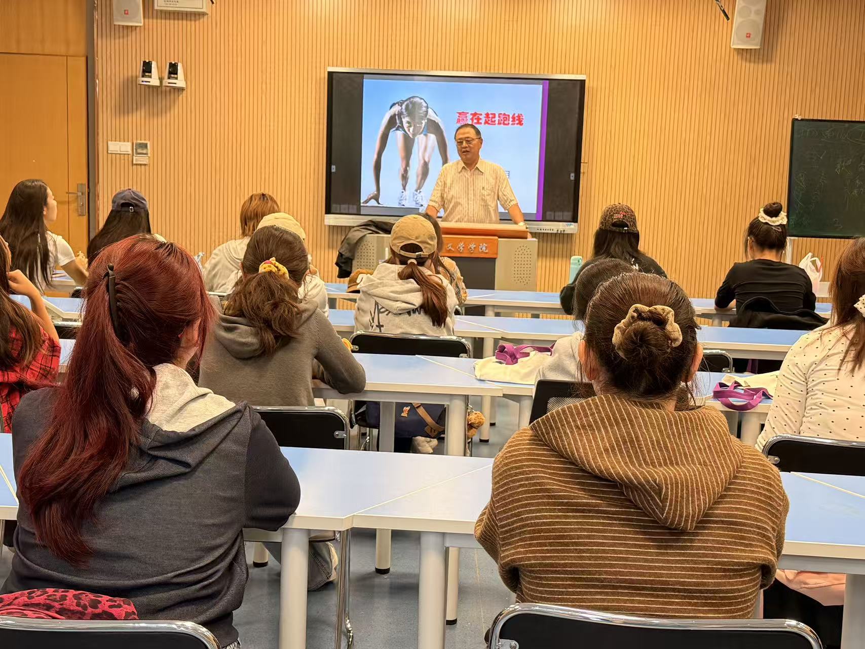 乔老师结合数十载教学管理经验,重新诠释“起跑线”内涵。他指出,真正的领先不在于知识储备,而在于健全人格、良好习惯与清晰自我认知。他鼓励学生将外语视为连接世界的工具,重视文化内涵学习,并寄语学子树立远大理想,培养终身学习能力,注重综合素质提升。讲座现场气氛热烈,互动环节学生踊跃提问。同学们纷纷表示,讲座帮助他们明确了发展方向,获得了前行的力量。