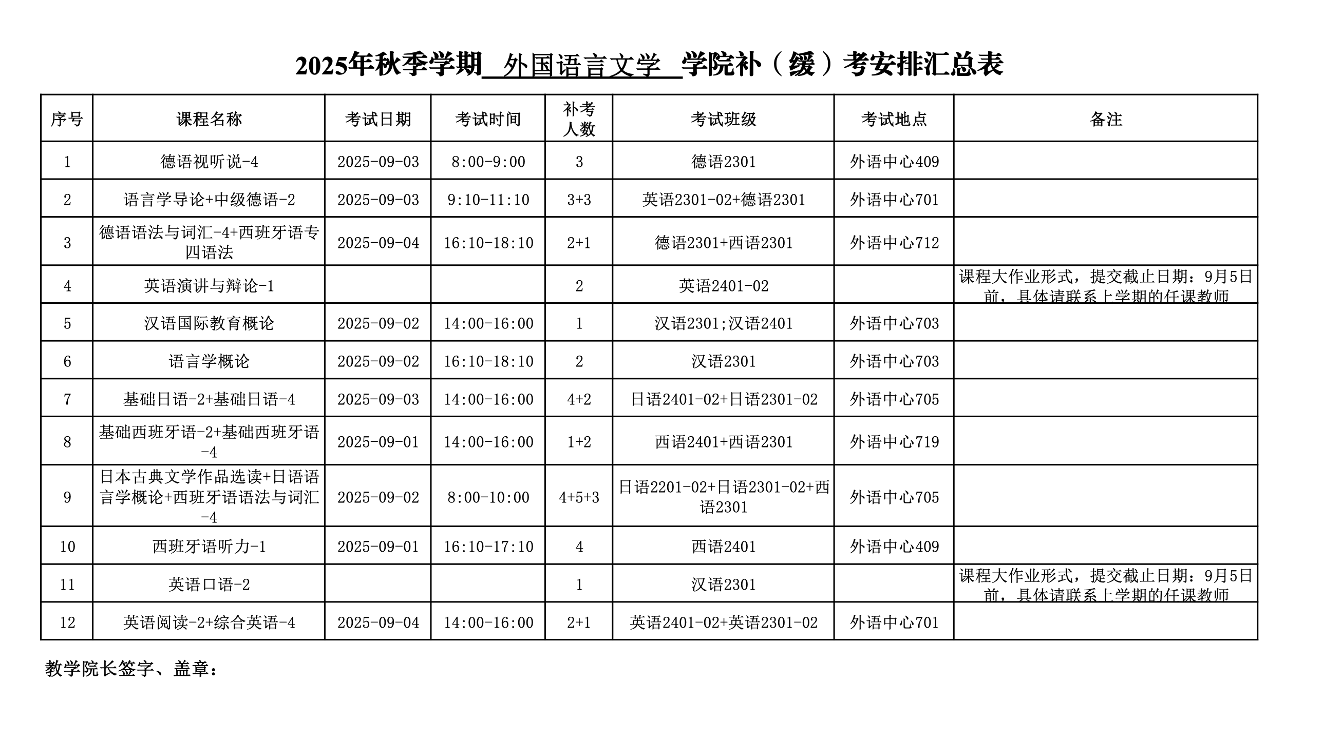 2025年秋季学期学院补(缓)考安排